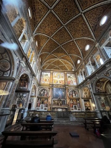 Mně nejvíc dostal zvenku zcela nenápadný kostel Chiesa di San Maurizio. Je to královská kaple ze 16. století a právem se jí přezdívá taky malá Sixtínská kaple nebo skrytý milánský klenot. I když je zadara a nádherná, elektrokolo byste si o ni při pohledu zvenku neopřeli. Fresky uvnitř tvořil spolupracovník da Vinciho.